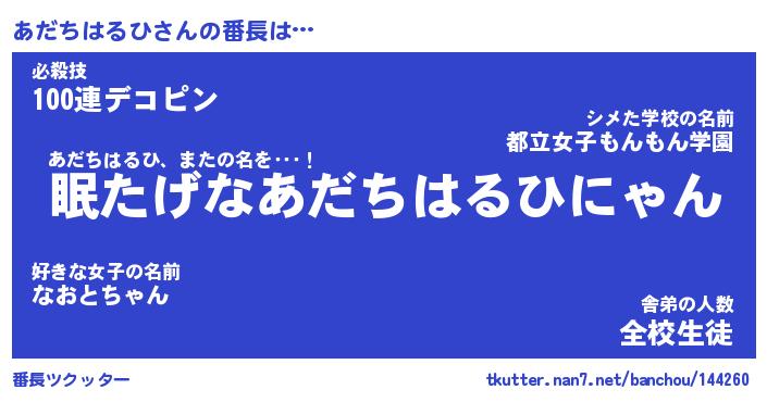 | ポケモン風あだ名 | 『アダチュウ』『アダチダネ』 |