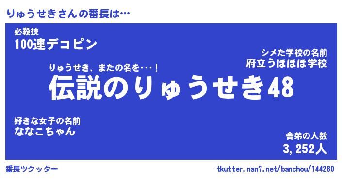 | ファンタジー風あだ名 | 『リュフェル』『エターナルリュウセキー』 |