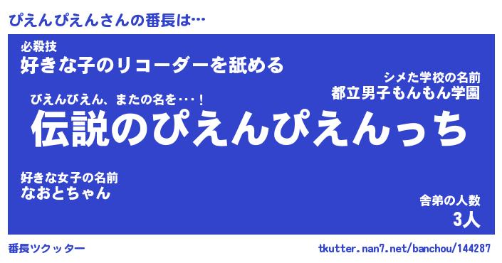 | 2回繰り返すあだ名 | 『ぴえぴえ』『ぴぴええ』『ぬぷぬぷ』 |