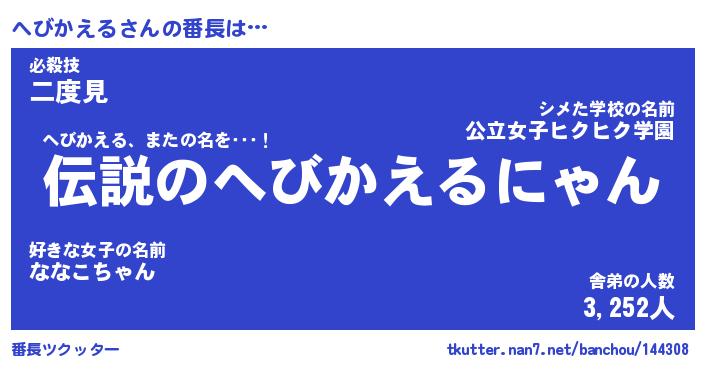 | 2回繰り返すあだ名 | 『へびへび』『へへびび』『げしげし』 |