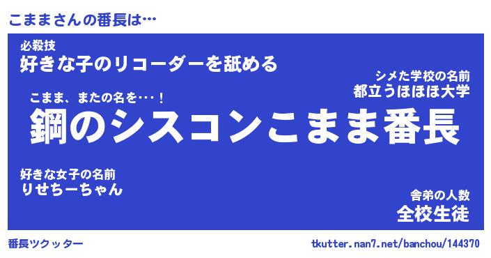 | ヘコむあだ名 | 『こまもー』『なまこ酢』『こまっぺ』 |