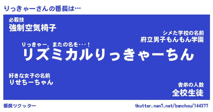 | 伝説のあだ名 | 『伝説の竜騎士りっきゃー』 |