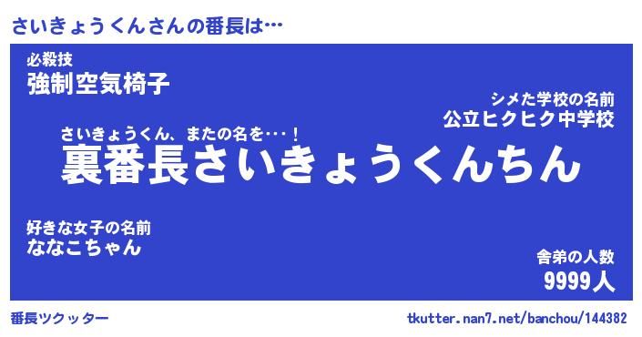 | 伝説のあだ名 | 『不死鳥のスナイパーさいきょうくん』 |