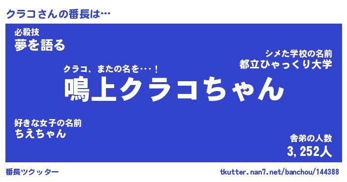| ヘコむあだ名 | 『クラにー』『豆乳』『クラ太郎』 |