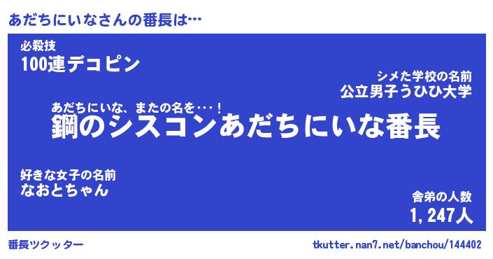 | ポケモン風あだ名 | 『アダチュウ』『アダチダネ』 |
