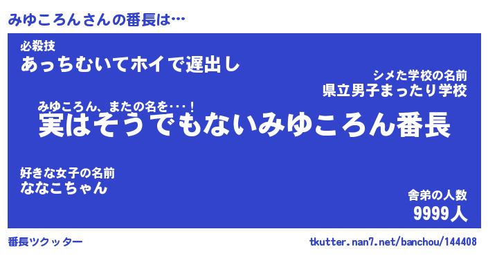 | ファンタジー風あだ名 | 『ミユフェル』『エターナルミユコロンー』 |