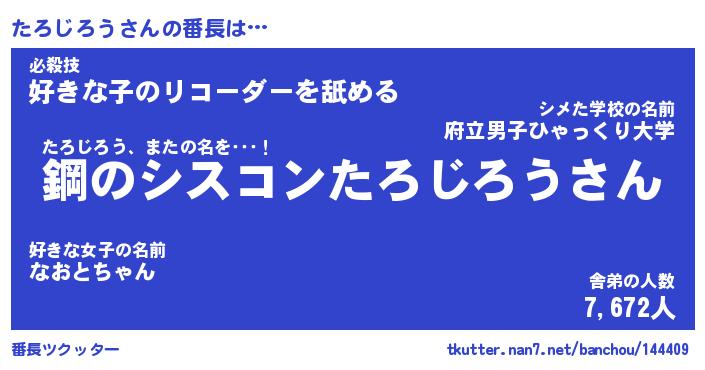 | 肩書あだ名 | 『たろじろう御曹司』『たろじろう大統領』 |
