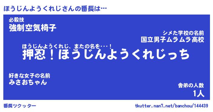 | 伝説のあだ名 | 『封印されしスナイパーほうじんようくれじ』 |