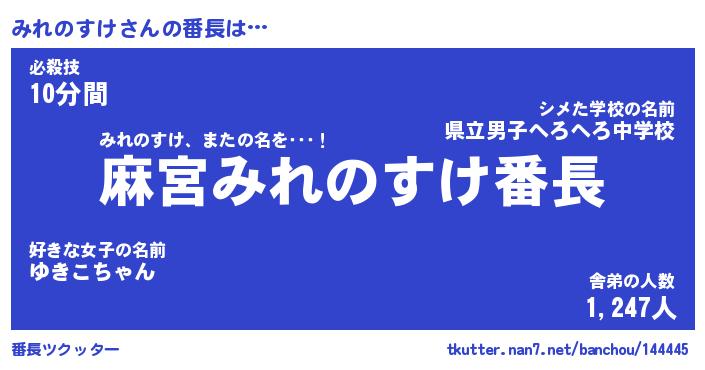 | 女子向けラノベタイトル風あだ名 | 『みれのすけ姫と円卓の騎士』 |
