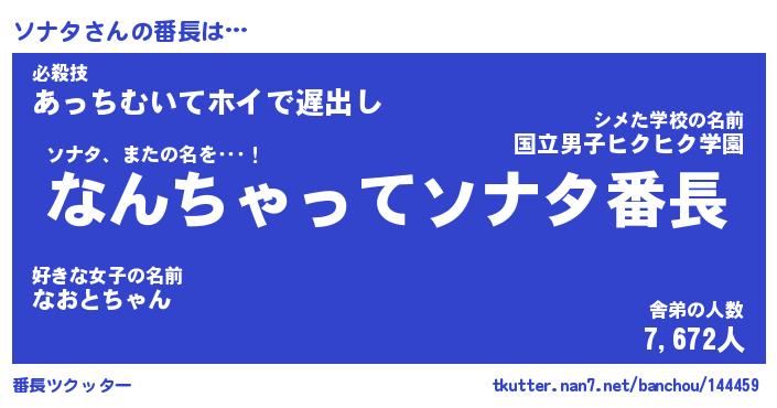 | ポケモン風あだ名 | 『ソナチュウ』『ソナタダネ』 |