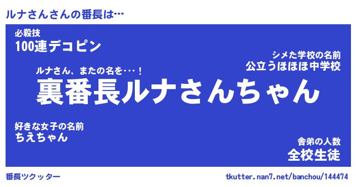 | ピコ太郎風あだ名 | 『ルコ次郎』『ピル太郎』『ルナ四郎』 |