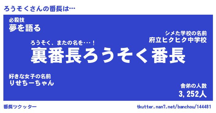 | ヘコむあだ名 | 『ろうにー』『豆乳』『ろうを』 |