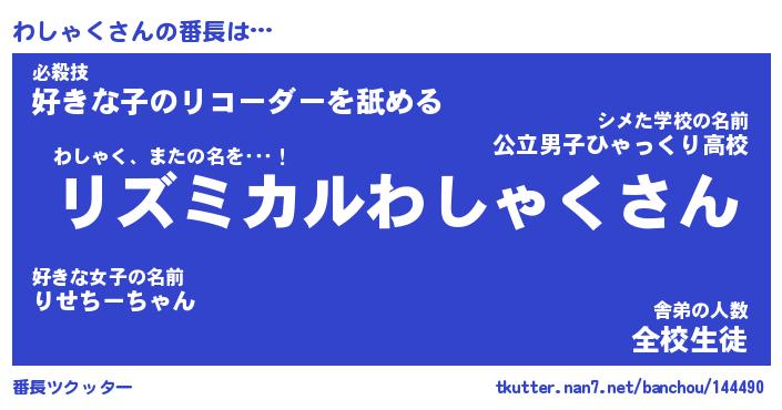 | 意味不明あだ名 | 『ペロリンわしゃく』『永久保存わしゃく』 |