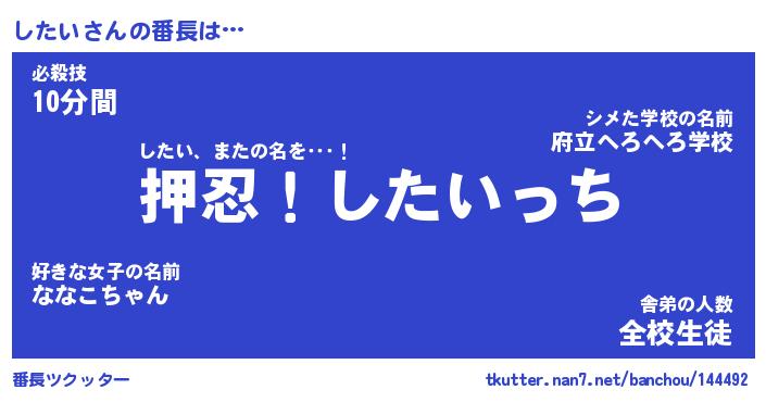 | ヒーロー風カッコイイあだ名 | 『スーパーシタイ』『ウルトラしたいマン』 |