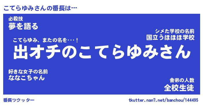 | ファンタジー風あだ名 | 『コテフェル』『エターナルコテラユミー』 |