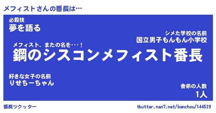 | ファンタジー風あだ名 | 『メフフェル』『エターナルメフィストー』 |