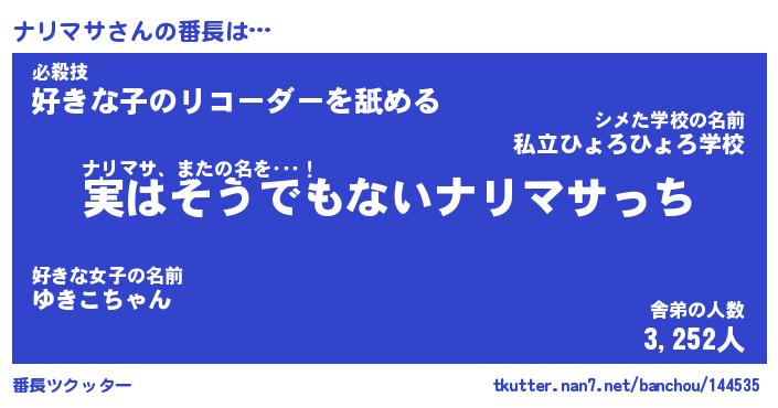 | 意味不明あだ名 | 『ペロリンナリマサ』『永久保存ナリマサ』 |
