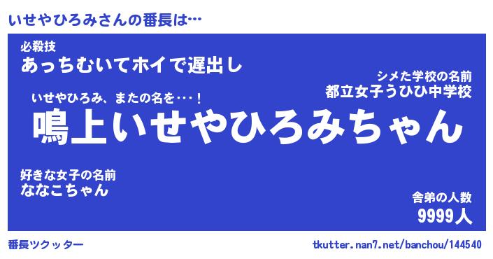 | 肩書あだ名 | 『いせやひろみ店長』『いせやひろみ校長』 |