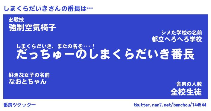 | 胡散臭い通販商品みたいなあだ名 | 『必ず成功するブレスレット…その名も「しまくらだいき」』 |