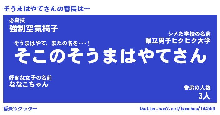 | 胡散臭い通販商品みたいなあだ名 | 『モテモテ間違いなしブレスレット…その名も「そうまはやて」』 |