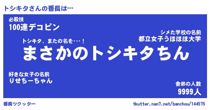 | 意味不明あだ名 | 『ペロリントシキタ』『永久保存トシキタ』 |
