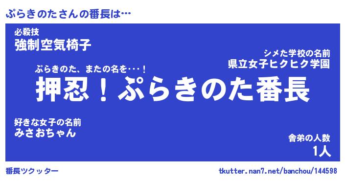 | ヘコむあだ名 | 『ぷらにゅー』『つくし』『ぷらっ子』 |
