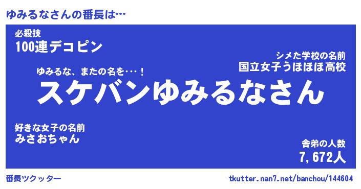 | 意味不明あだ名 | 『ペロリンゆみるな』『永久保存ゆみるな』 |
