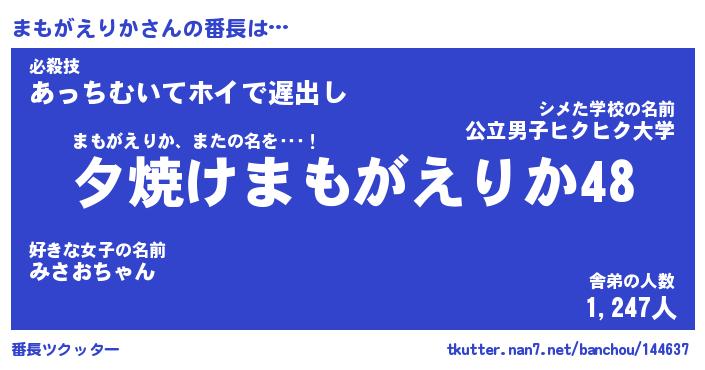 | 男性向けラノベタイトル風あだ名 | 『マモガエリカアートオンライン』 |