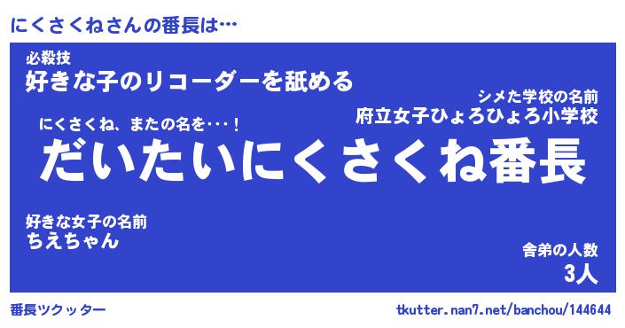 | 男性向けラノベタイトル風あだ名 | 『にくさくねの憂鬱』 |