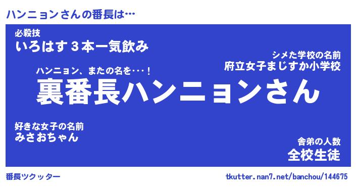 | ポケモン風あだ名 | 『ハンチュウ』『ハンニダネ』 |