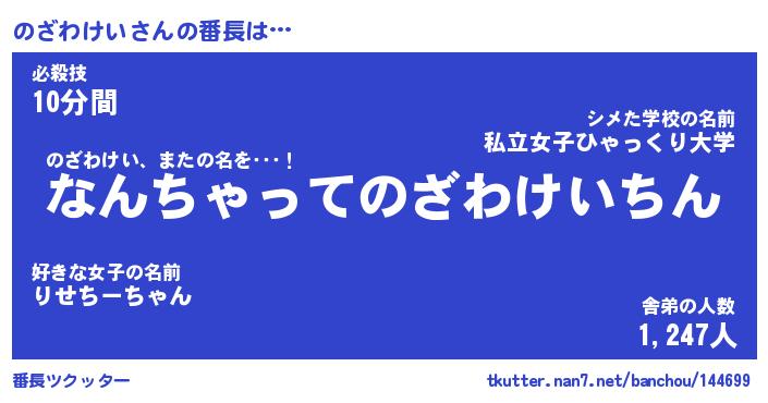 | ヘコむあだ名 | 『のざにー』『豆乳』『のざお』 |