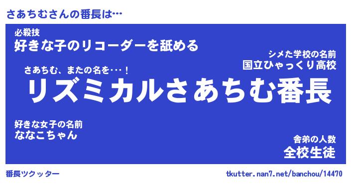 | 意味不明あだ名 | 『ペロリンさあちむ』『永久保存さあちむ』 |