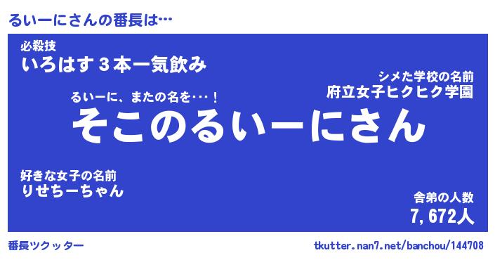 | ヘコむあだ名 | 『るいっふぃ~』『なまこ酢』 |