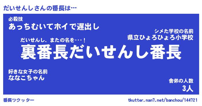 | 恥ずかしいあだ名 | 『プリティーだいせんし』『だいっちょ』 |