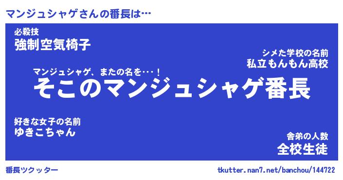 | 男性向けラノベタイトル風あだ名 | 『マンジュシャゲの憂鬱』 |