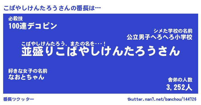 | 伝説のあだ名 | 『不死鳥のスナイパーこばやしけんたろう』 |