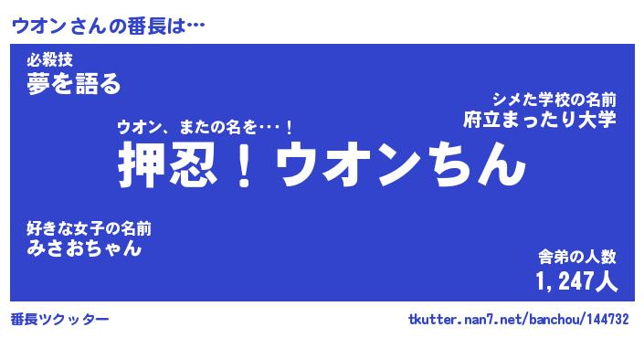 | 意味不明あだ名 | 『ペロリンウオン』『ウオンフォーエバー』 |