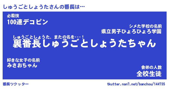 | 肩書あだ名 | 『しゅうごとしょうた店長』 |