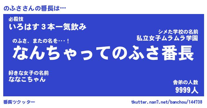 | ヒーロー風カッコイイあだ名 | 『スーパーノフサ』『ウルトラのふさマン』 |