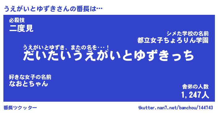 | ツイッター | うえがいとゆずきさんのツイッターID『masyumaro_star』 |