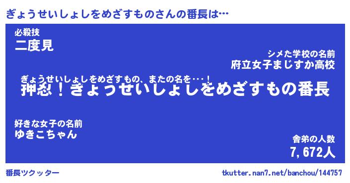 | ヒーロー風カッコイイあだ名 | 『スーパーギョウセイショシヲメザスモノ』 |