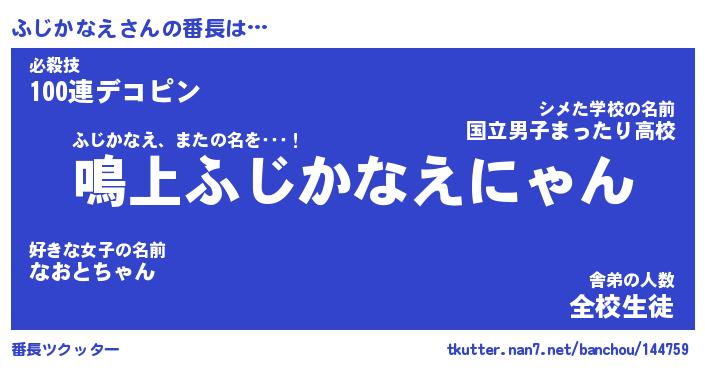 | 肩書あだ名 | 『ふじかなえ店長』『ふじかなえ国家主席』 |