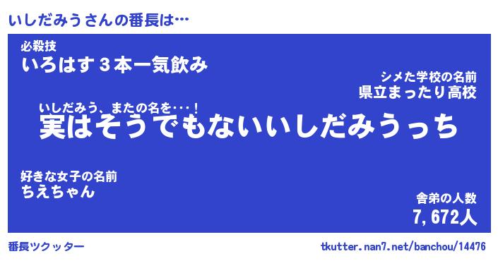 | ピコ太郎風あだ名 | 『イコ五郎』『ピイ史郎』『イシ三郎』 |