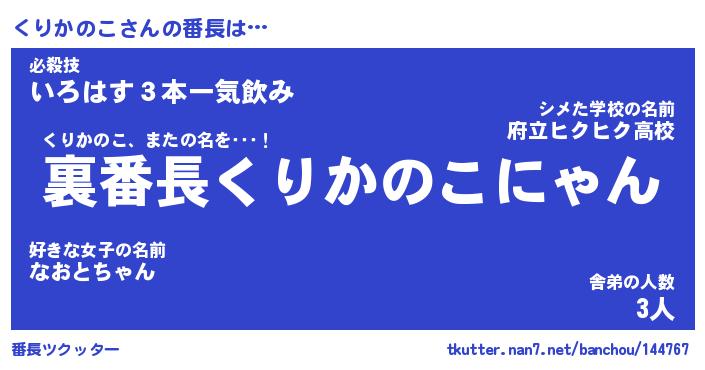 | ヒーロー風カッコイイあだ名 | 『スーパークリカノコ』『魔戒騎士クリ』 |