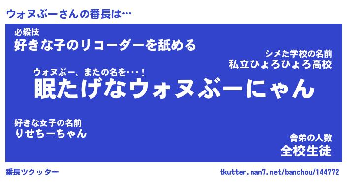 | ヒーロー風カッコイイあだ名 | 『スーパーウォヌブー』『暗黒騎士ウォ』 |