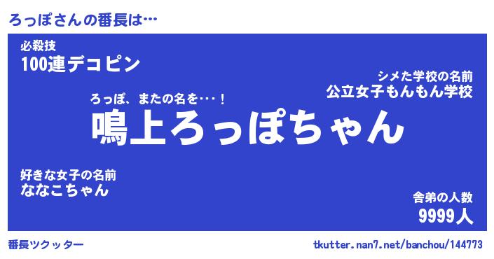| ヘコむあだ名 | 『ろっもー』『つくし』『ろっぷりん』 |