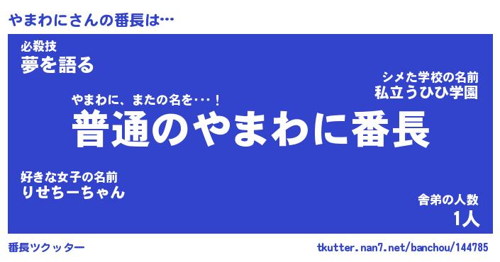 | 意味不明あだ名 | 『ペロリンやまわに』『永久保存やまわに』 |