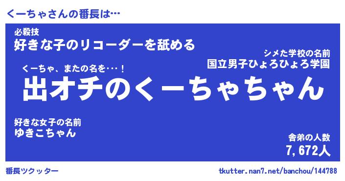 | 意味不明あだ名 | 『ペロリンくーちゃ』『永久保存くーちゃ』 |