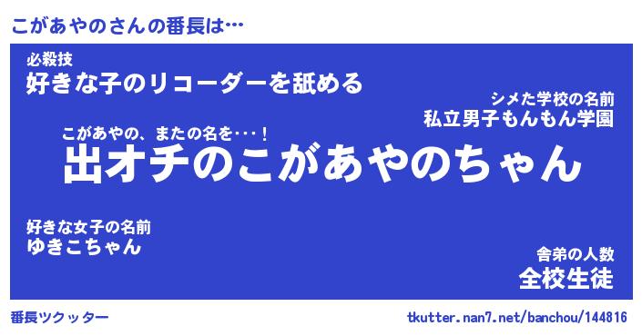 | 伝説のあだ名 | 『伝説のスナイパーこがあやの』 |