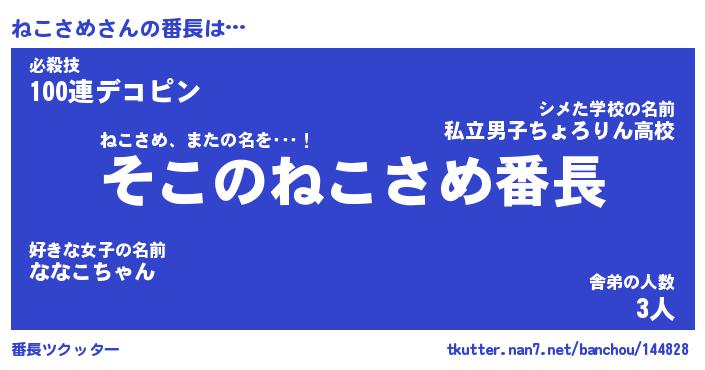 | ヘコむあだ名 | 『ねこにゅー』『つくし』 |